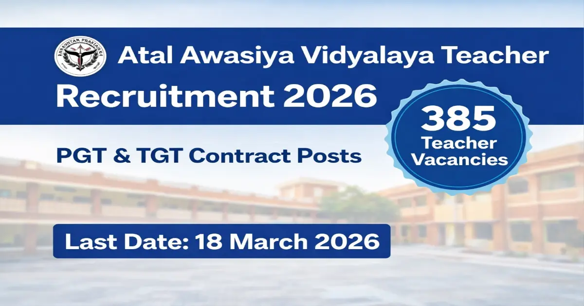 The Atal Awasiya Vidyalaya Teacher Recruitment 2026 notification has been released for experienced and retired teachers. The recruitment is being conducted by Atal Awasiya Vidyalaya Samiti, Uttar Pradesh, to appoint teachers on a contractual basis for the academic session 2026–27.